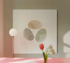 Dit minimalistische aquarelpatroon bestaat uit zacht verspreide organische kiezelvormen in warme beige en gedempte olijfgroene tinten. De handgeschilderde textuur en luchtige witte achtergrond creëren een rustige, moderne esthetiek geïnspireerd door de natuur en Scandinavische eenvoud. Dit ontwerp is perfect voor eigentijdse interieurs en voegt subtiel karakter toe zonder visuele rommel. Ideaal voor woonkamers, slaapkamers, kantoren en stijlvolle galeriewanden die een evenwichtige, natuurlijke uitstraling nastreven.