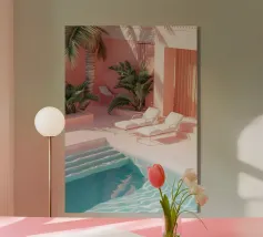 Stap in het hart van Marrakech met deze fascinerende foto van een weelderig, groen riad-interieur. Het levendige groen en de ingewikkelde architectonische details creëren een serene oase van rust, waar traditioneel Marokkaans design en natuurlijke schoonheid elkaar ontmoeten. Rijke planten cascade rond de binnenplaats zwembad, hun levendige bladeren contrasteren met de elegante betegelde vloeren. Dit beeld roept de rust en allure op van een Marokkaans toevluchtsoord, waar de drukte van de stad vervaagt en je wordt omgeven door een vredige, groene ontsnapping.