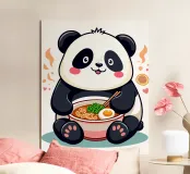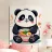 Een schattige en knuffelbare pandabeer geniet van een heerlijke kom ramen. Dit speelse ontwerp is perfect voor zowel fijnproevers als dierenliefhebbers.