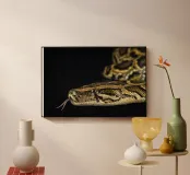 Ontdek de woeste elegantie van de natuur met onze Python Headshot Poster. Deze opvallende close-up vangt elk detail - van de hypnotiserende ogen tot de ingewikkelde schubben - tegen een dramatische zwarte achtergrond. Deze poster is perfect om een gedurfd en exotisch tintje aan elke ruimte te geven en is ontworpen om te boeien en te inspireren.