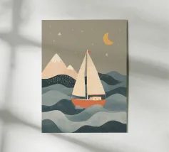 Ontwerp met rood bootje in oceaan