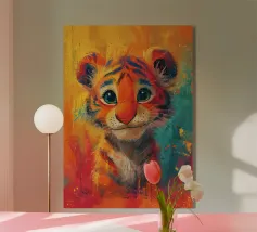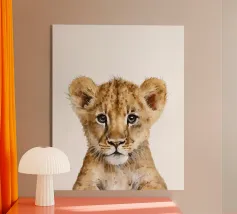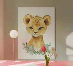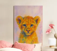 Schattige leeuwenwelp illustratie met expressieve ogen en speels acryl