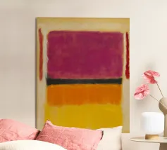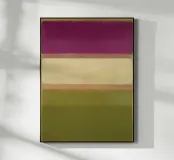 Dit abstracte schilderij is geïnspireerd op de stijl van Mark Rothko en toont zacht in elkaar overlopende kleurvlakken in violet, donkergroen en beige, die een meditatieve en emotionele stemming creëren. In het midden bevindt zich een helder veld dat rust en diepte geeft aan de compositie. De minimalistische en moderne indeling in kleurblokken nodigt de kijker uit om na te denken over het pure effect van kleur en vorm.