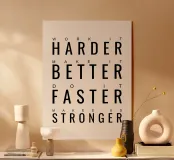 Verleg je grenzen met de motiverende muurkunst "Work It Harder, Make It Better". Met gedurfde typografie inspireert dit stuk tot toewijding, verbetering en voortdurende inspanning voor uitmuntendheid. Gemaakt van hoogwaardige materialen voor duurzaamheid en stijl, is het perfect voor kantoren, thuis sportscholen, of persoonlijke werkruimtes. Dit kunstwerk dient als dagelijkse herinnering om het beste van jezelf te geven en te streven naar grootsheid. Ideaal voor wie houdt van groei en zelfverbetering, het voegt motivatie en energie toe aan elke ruimte.