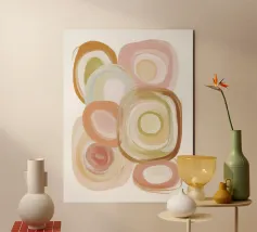 An abstract painting featuring layered circular shapes and subtle textures. The warm color palette adds depth and softness, making it a refined focal point for modern spaces.