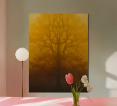 Fel verlichte boomtakken creëren een fascinerend abstract aluminium-dibond