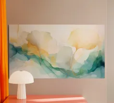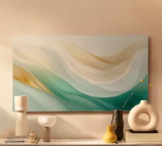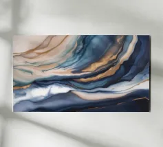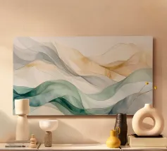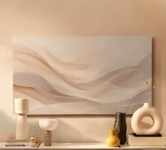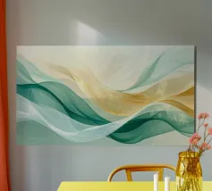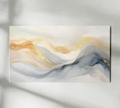 Elegante abstracte golven in zachte tinten creëren een rustgevende kunst aluminium-dibond