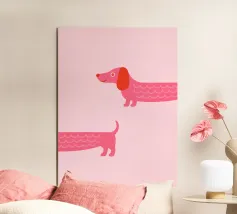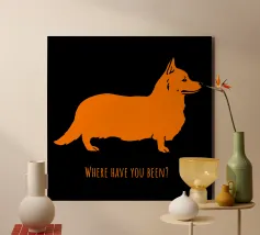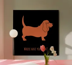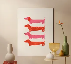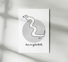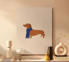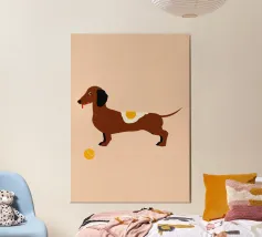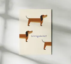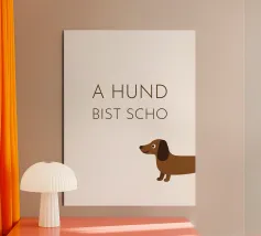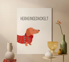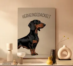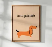 Het motief toont een schattige oranje teckel met de humoristische tekst "Herein gedackelt" op een beige achtergrond. Ontworpen in warme oranje en bruine tinten, combineert de afbeelding humor en charme op een charmante manier. Een speelse, minimalistische illustratie die elke entree zal opfleuren met een glimlach.