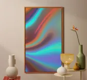 Dit ontwerp toont een vloeiende mix van kleuren met kleurverlopen die een abstracte achtergrond creëren. De kleurrijke wervelingen roepen een gevoel van beweging en energie op.