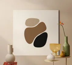 Dit minimalistische aquarelpatroon bestaat uit zacht verspreide organische kiezelvormen in warme beige en gedempte olijfgroene tinten. De handgeschilderde textuur en luchtige witte achtergrond creëren een rustige, moderne esthetiek geïnspireerd door de natuur en Scandinavische eenvoud. Dit ontwerp is perfect voor eigentijdse interieurs en voegt subtiel karakter toe zonder visuele rommel. Ideaal voor woonkamers, slaapkamers, kantoren en stijlvolle galeriewanden die een evenwichtige, natuurlijke uitstraling nastreven.