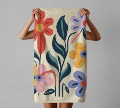 Een prachtig patch van grillige, gestileerde wilde bloemen is geïllustreerd in een charmante, volkskunst geïnspireerde stijl, met een heerlijke mix van kleuren en vormen die vreugde en natuurlijke schoonheid uitstralen.