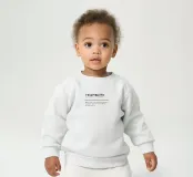 Onze baby sweatshirts bestaan uit 85% biologisch katoen en 15% gerecycled polyester.