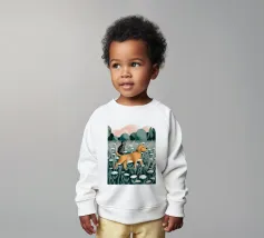 Onze baby sweatshirts bestaan uit 85% biologisch katoen en 15% gerecycled polyester.