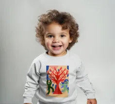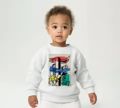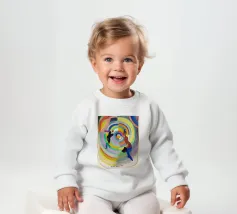 Onze baby sweatshirts bestaan uit 85% biologisch katoen en 15% gerecycled polyester.