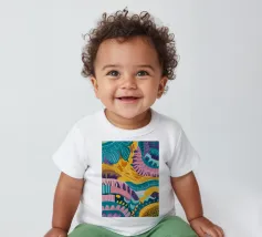 Al onze baby T-shirts zijn kleurvast en kunnen in de machine worden gewassen op 30 °C.