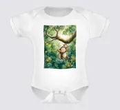 Een vrolijk jungletafereel met twee schattige aapjes die op een schommel zitten die aan een boomtak hangt. Perfect voor kinderkamers of interieurs met een junglethema, brengt speelse energie en weelderig groen naar elke muur.