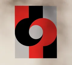Een opvallende abstracte compositie geïnspireerd op het Bauhaus-design, met gedurfde rode en zwarte geometrische vormen die in een dynamisch evenwicht zijn gerangschikt. Strakke lijnen en sterke contrasten creëren een tijdloze, moderne esthetiek.