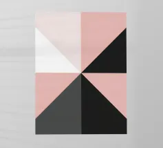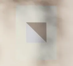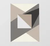 Geometric shapes in neutral tones create an abstract composition with overlapping triangles and a central square. The interplay of light and shadow adds depth to the minimalist design.