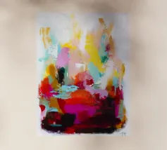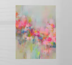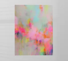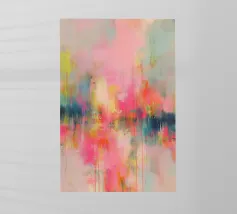 Dieses abstrakte Kunstwerk zeigt ineinanderfließende Farbflächen in Pastellrosa, Gelb, Blau und Grün und Pink. Die weichen Pinselstrukturen und die harmonische Popart Farbkomposition erzeugen eine Vibrierende, Lebendige Atmosphäre. Das Motiv wirkt modern, leicht und emotional und lädt zur freien Interpretation ein.