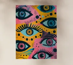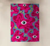 A mesmerizing and psychedelic pattern featuring repeating eyes amidst swirling, organic pink and magenta shapes. This bold and surreal artwork is both hypnotic and intensely energetic.