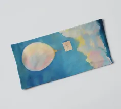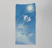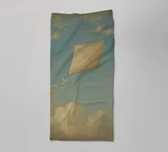 Een dromerige, met licht gevulde illustratie van twee witte vliegers die door een zachtblauwe lucht zweven, met delicate lintstaarten als ze in de buurt van de gloeiende zon zweven. Met een pastelkleurige textuur en een vredig palet vangt dit kunstwerk de essentie van vrijheid, nostalgie en stille vreugde. Perfect voor kinderkamers, luchtige woonkamers of iedereen die houdt van opbeurende, minimalistische scènes van sereniteit.