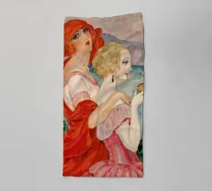 Vrouwen en hun vriendschappen. Dit is de focus van Dina Bukva's prachtige werken, die ze voornamelijk maakt op acryl. De kunstenares, die uit Kroatië komt en in Wenen woont, voltooide in 2018 haar master in grafisch en communicatieontwerp aan Central Saint Martins, om korte tijd later haar eigen merk, NUDES AND CROISSANTS, te lanceren. Het merk viert diversiteit in alle aspecten en vormen en is geïnspireerd door de schoonheid van het dagelijks leven. De korte animatiefilms van de kunstenares zijn op verschillende festivals vertoond en bekroond. Dina levert bijdragen aan Gault&Millau magazine en heeft al samengewerkt met merken als ZARA.