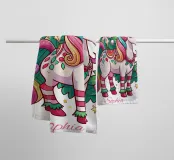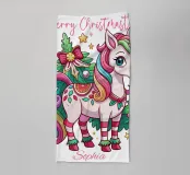 Stap in een wereld vol vakantiemagie met deze feestelijke eenhoorn, gehuld in kerstsfeer! Gekleed in zuurstokstrepen en omringd door twinkelende sterren, hulstblaadjes en kerstlinten, brengt dit grillige wezen een uitbarsting van regenboogvreugde in je seizoensgarderobe. De levendige kleuren en betoverende details maken dit ontwerp perfect voor het verspreiden van vakantievreugde waar je ook gaat! Perfect voor: Kerstfeestjes, vakantiebijeenkomsten of gewoon het omarmen van de magie van het seizoen.