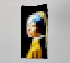 Een pixelachtige close-up van handen geïnspireerd op Michelangelo's iconische De Schepping van Adam. Het ontwerp vangt het delicate moment van bijna-aanraken met gedurfde blokachtige vormen en levendige pixel art-tinten, die het contrast tussen de vingers en de achtergrond benadrukken. De vereenvoudigde maar expressieve stijl behoudt de emotionele diepte van het originele kunstwerk en voegt een moderne, retro gaming-esthetiek toe.