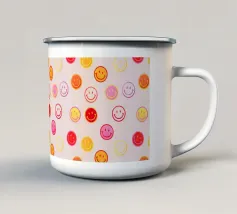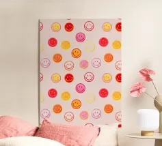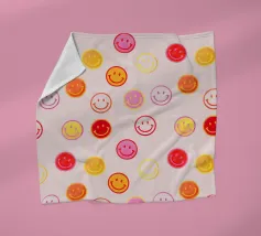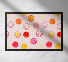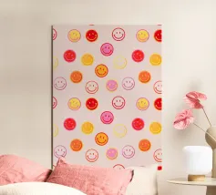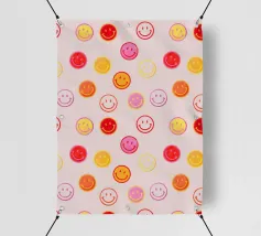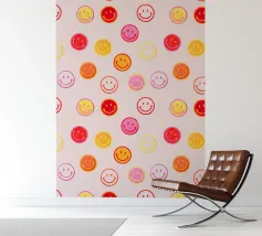 Smiling face kleurrijk patroon is een eenvoudig maar opvallend helder patroon in de kleuren roze, oranje, geel en rood. Het bevat veel lachende gezichten die je in een goed humeur brengen. Vrolijk en optimistisch patroon geïnspireerd door retro 70's stijl door showmemars