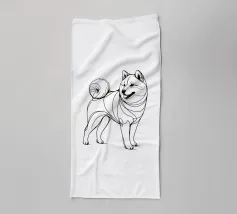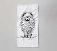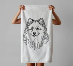 Blauwe lijntekening van een Spitz. Het hondmotief komt het best tot zijn recht op zeer lichte ondergronden.