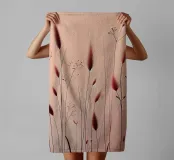 Fijne structuren, tere bloemen en fragiele grassprieten lopen als filigraanaders door het beeld en creëren een rustgevend en tegelijkertijd diep ontroerend tafereel. De dominante roze tinten geven het werk een ingetogen elegantie en nodigen de kijker uit om de schoonheid in eenvoud te ontdekken. Deze minimalistische compositie fluistert zachtjes over de vergankelijkheid van de natuur en de subtiele maar krachtige schoonheid die verborgen ligt in elk moment van het leven.