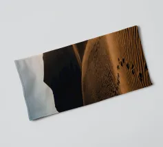 Each dune, shaped by the whispering wind, forms smooth, curving ridges that cast sharp, elegant shadows. The surface shimmers with heat, and fine grains of sand dance lightly across the crest, carried by the breeze. In this silent, arid world, the dunes stand as ever-changing sculptures — timeless, majestic, and mysterious.
