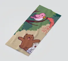 Dit kunstwerk toont een chagrijnige wolk met een gedachtewolkje met daarin een vogel en een beer. Het humoristische en fantasierijke tafereel speelt zich af tegen een zachtblauwe achtergrond.