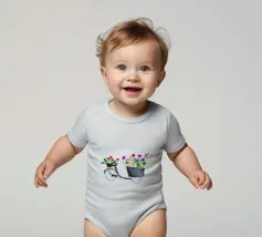 Alle babyrompers met korte mouwen worden geproduceerd en bedrukt door onze lokale betrouwbare partner.