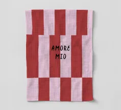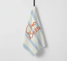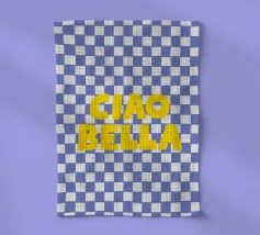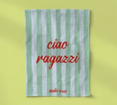 ciao ciao ciao opschrift op pistachekleurig ruitpatroon.