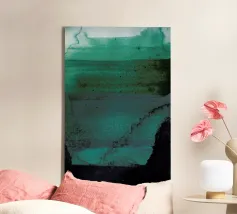 Abstract dynamisch gebogen patroon in groen en blauw canvas