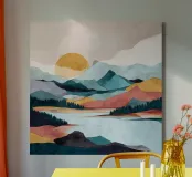 Abstract Mountain Landscape - Colorful Geometric Design canvas met Baklijst