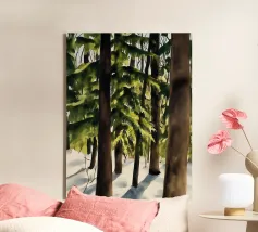 Een meditatieve serie aquarelschilderijen waarin de complexe texturen en tonale ritmes van boomschors worden onderzocht. Met behulp van een gedempt palet van zwarten, bruinen en grijzen, vangt elk stuk de organische stroming en gelaagde oppervlakken die gevonden worden in boomstammen. De verticale composities echoën de rustige herhaling van de natuur en bieden zowel structuur als zachtheid door expressieve abstractie.