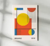 Een dynamische en klassieke digitale poster ter ere van de oprichting van Bauhaus in 1919. De compositie bestaat uit een asymmetrische opstelling van grote geometrische vormen - cirkels en rechthoeken - in het iconische, op primaire vormen geĆÆnspireerde kleurenpalet van rood-oranje, blauw en geel. Dikke zwarte lijnen zorgen voor een duidelijke structuur, terwijl fijne verticale en horizontale lijnen diepte en textuur toevoegen aan delen van het ontwerp. Dit werk is een krachtig voorbeeld van minimalistisch modernistische en op De Stijl geĆÆnspireerde kunst. Deze eersteklas digitale download heeft 7000x5000 pixels bij 300 dpi, wat zorgt voor uitzonderlijke helderheid en superieure afdrukkwaliteit.