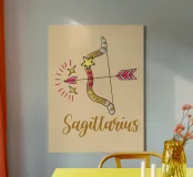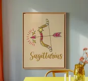 Kawaii-ontwerp van een pijl en boog die het sterrenbeeld Boogschutter voorstellen. Perfect om accessoires en decoraties een vleugje dierenriemzoetheid te geven!