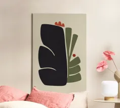 Modern abstract canvas met cactus design, ideaal voor een stijlvolle woonkamer of kantoor. Dit duurzame wanddecor brengt een artistieke touch met een minimalistisch kleurenschema van zwart en oranje. Europees vervaardigd met hoogwaardige materialen, perfect voor liefhebbers van botanische en minimalistische kunst.