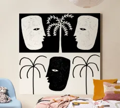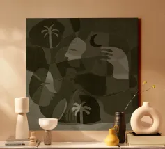 Celestial - 1" en "Celestial - 2" koesteren een gevoel van kosmische verwondering en zijn een opvallend paar kunstwerken die de verbinding tussen de natuur en het universum verweven. Met palmbomen in harmonie met hemelse elementen zoals de zon en de maan, creëren deze werken een boeiende dialoog tussen aardse schoonheid en de uitgestrektheid van de kosmos. Dit duo is ideaal om een vleugje etherische charme toe te voegen aan je inrichting en brengt natuurlijke elementen prachtig in balans met hemelse grandeur, perfect om een samenhangende en betoverende ruimte te creëren.