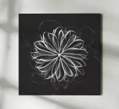 Een betoverende, etherische bloem ontvouwt zich tegen een diepzwarte achtergrond en straalt een buitenaardse gloed uit. De ingewikkelde bloemblaadjes en delicate lijnen roepen een gevoel van kosmische schoonheid en rust op.