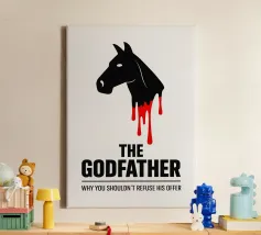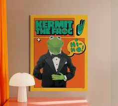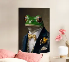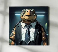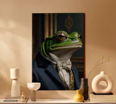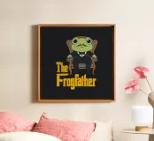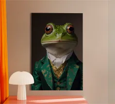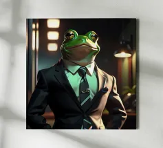 Een goed geklede kikker zit als een echte maffiabaas, met een smoking en een rode roos, in een slimme knipoog naar The Godfather. Deze parodie mengt klassieke cinema vibes met onweerstaanbare schattigheid. Perfect voor filmliefhebbers, kikkerfans en iedereen die houdt van een slimme en grappige draai aan iconische films.