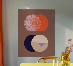 De "Diskus" canvas van Felix Schuster voegt een speelse touch toe aan elke ruimte met zijn moderne abstracte ontwerp. Dit oogverblindende kunstwerk is perfect voor je woonkamer, slaapkamer of kantoor.