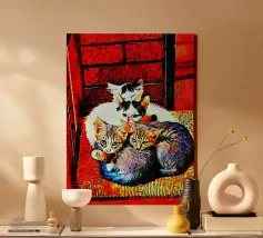 "Illustratie "Drie katjes De schattigheid van drie kleine katjes in één ontwerp! Dit ontwerp heeft drie schattige en schattige kittens, perfect voor kattenliefhebbers en mensen die op zoek zijn naar een lief tintje in hun leven.