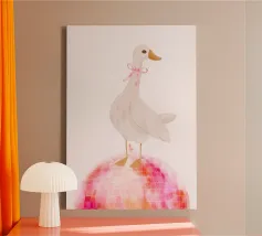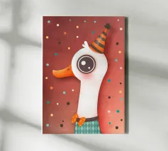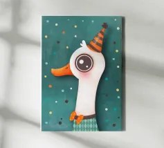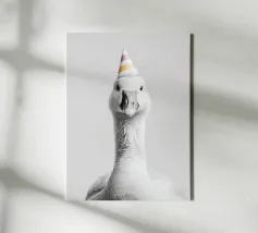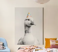 Breng een vrolijke sfeer in je huis met deze schattige canvasprint van een feestelijke gans! Perfect voor een kinderkamer, speelkamer of als vrolijke toevoeging aan je woonkamer. De kleurrijke ballonnen en de feesthoed zorgen voor een speelse uitstraling. Ideaal als cadeau voor een verjaardag of om zelf op te hangen als je houdt van unieke en vrolijke kunst. Deze print is niet alleen een eyecatcher, maar ook een geweldige manier om je liefde voor dieren te tonen. Ga voor een felle, vrolijke stijl in je interieur met deze leuk afgebeelde gans!