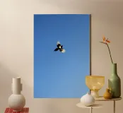 vogel, flug, freiheit, himmel, blau, minimalismus, natur, ruhe, leichtigkeit, bewegung, stille, balance, vogel im flug, freedom, serenity, zen, achtsamkeit, moderne fotografie, wall art, contemporary art, natural beauty, blue sky