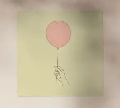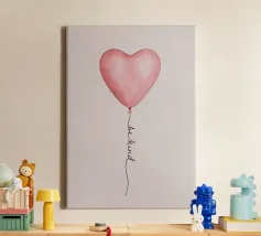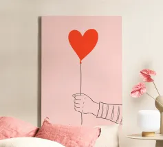 Hand die een roze ballon tegen een zachtgele achtergrond houdt canvas