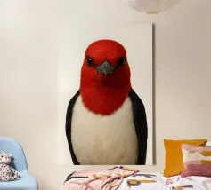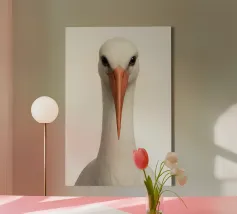 Deze prachtige kunstdruk heeft een hyperrealistisch, frontaal valkportret tegen een strakke witte achtergrond voor een gedurfde en moderne look. Elke veer en elk detail is levensecht vastgelegd, met de nadruk op de scherpe ogen en de sterke snavel van de vogel. De minimalistische compositie voegt een verfijnde elegantie toe die elke moderne ruimte verbetert. Perfect voor natuurliefhebbers, vogelliefhebbers en stijlvolle interieurdecoratie. Dit boeiende stuk brengt kracht, gratie en door de natuur geïnspireerde schoonheid aan je muren.